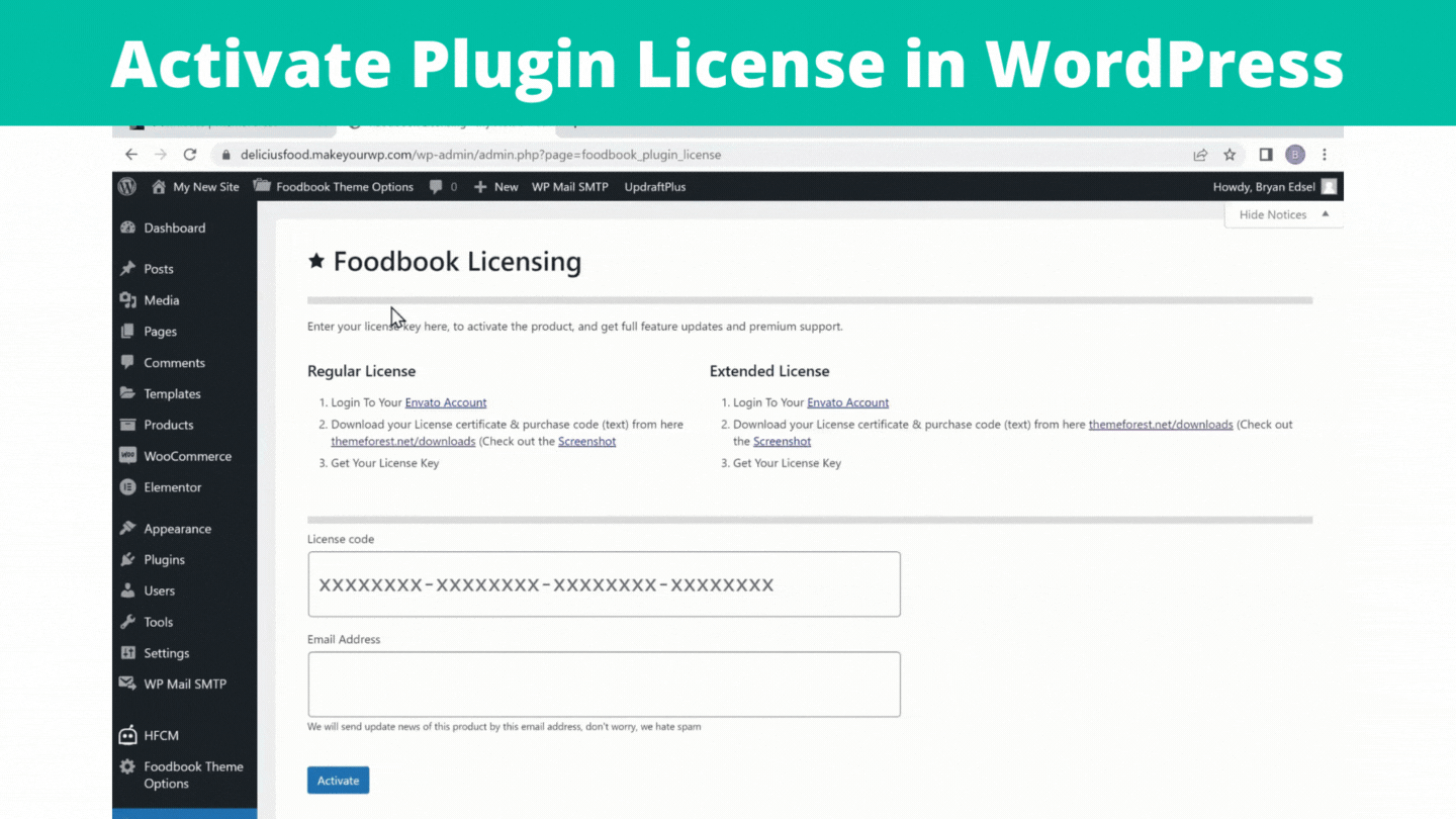 Go back to your dashboard and paste it here. Give the email address you used to buy the plugin and click Activate.