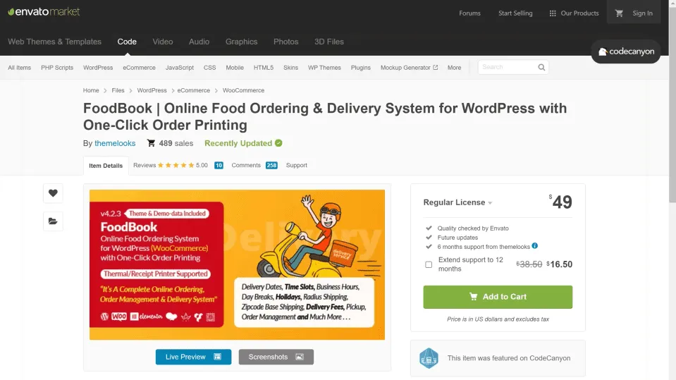 Click this link to get the FoodBook plugin. This is the plugin that will help you to add all the features to your site.