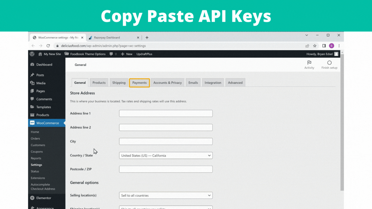 To let your customers make a payment on your site, you need to connect your Razorpay account with your website.