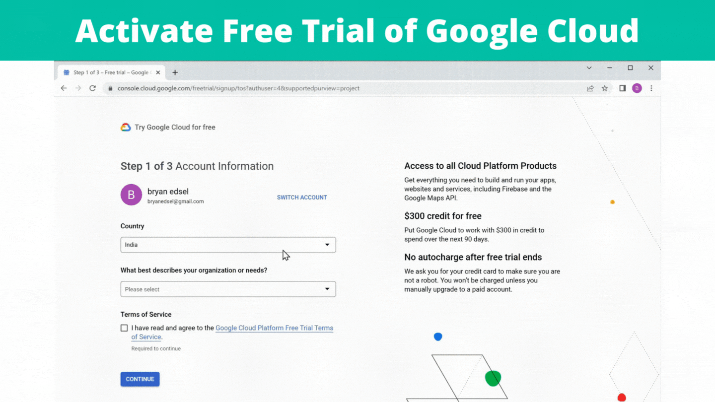 Click Activate, and here you need to give some information about yourself to use the free trial. Select your country and provide a phone number to receive a verification code, account type, and card details. The details will be used only for verification, and you won’t be charged when the free trial ends. Finally, click ‘Start Free Trial’.