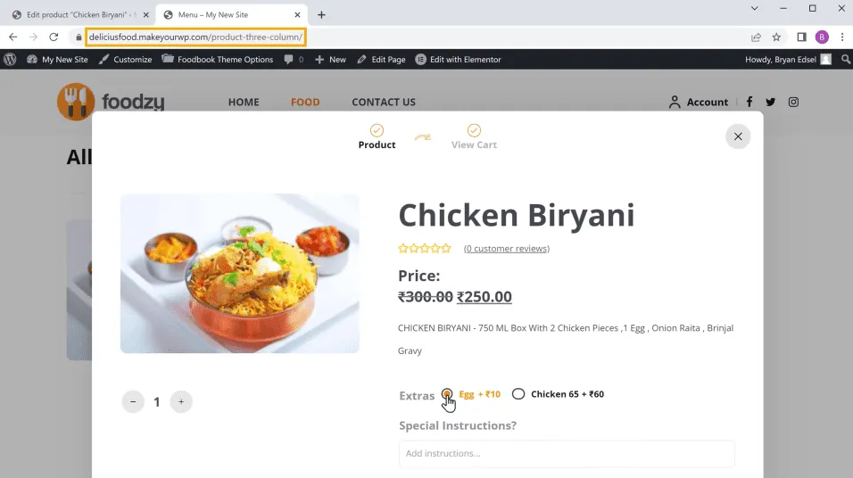 Next, let’s see how you can add extra food options to your customers when they order a product.