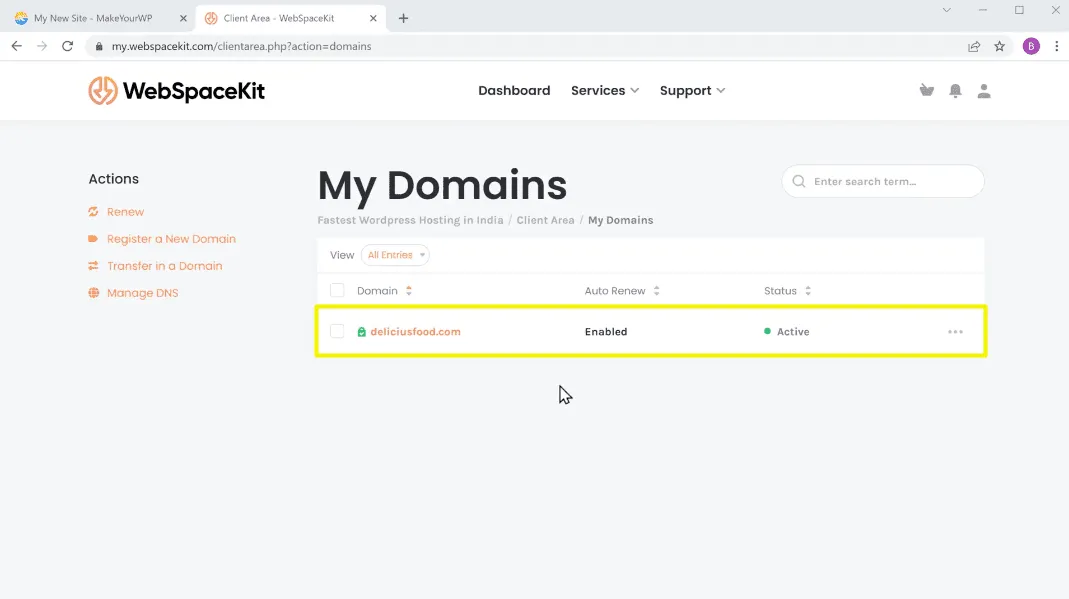 It would be best to choose a good hosting provider that offers excellent performance, automated backups, top-notch security, and more. You already have hosting on MakeYourWP for your site, and you will see how you can get a unique domain for your hotel booking website.