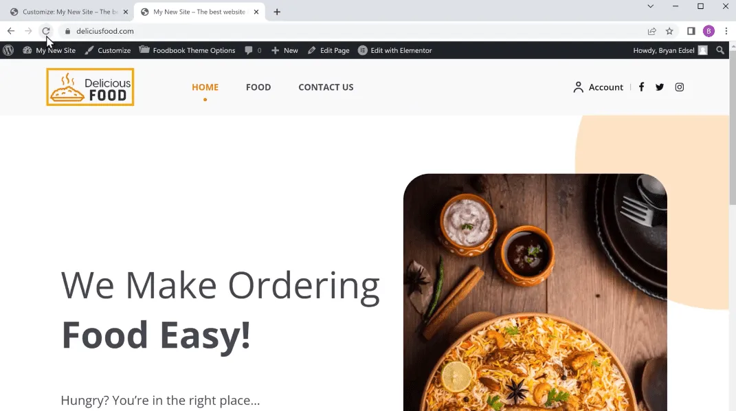 Now if you go to your site and click ‘refresh’. You can see the food product that you just added.