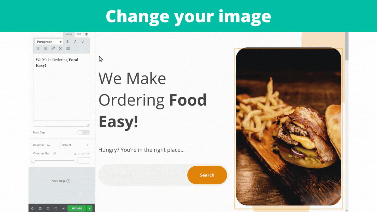 MakeYourWP provides you with the right set of tools that you can use to start building your website right away with a pre-designed food ordering website template with just a single click. The template is simple and accessible to everyone. You can customize it quickly, and it works well even if you are a family restaurant or a large restaurant chain.
