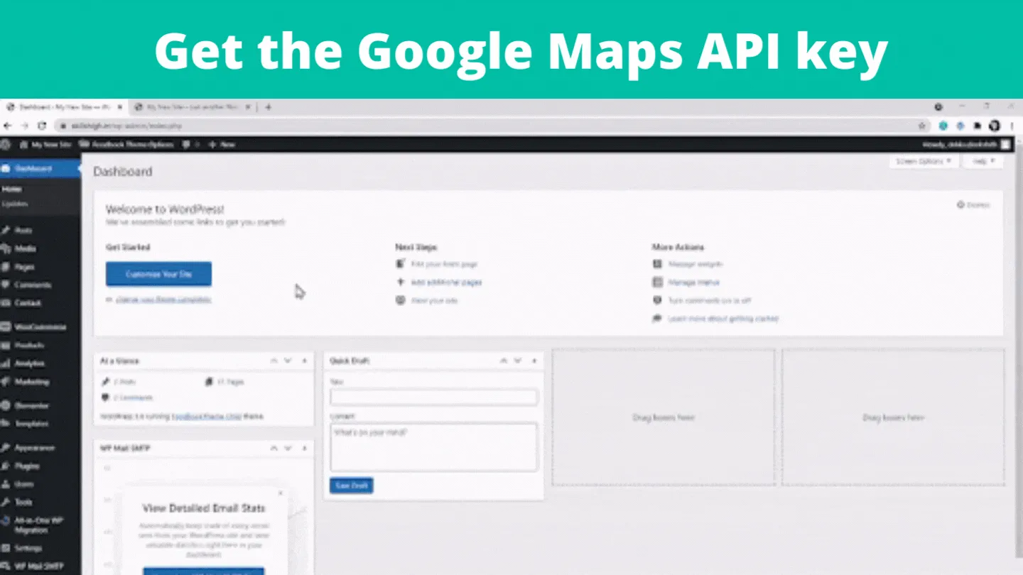 Now to enable the auto-filling feature, you need the Google API key. So go to your WordPress Dashboard and then go to FoodBook. Click on Settings and then go to Location settings to copy the API key. Now go to WooCommerce and click Autocomplete address for Woocommerce. Paste the Google API key here and click Save Changes.