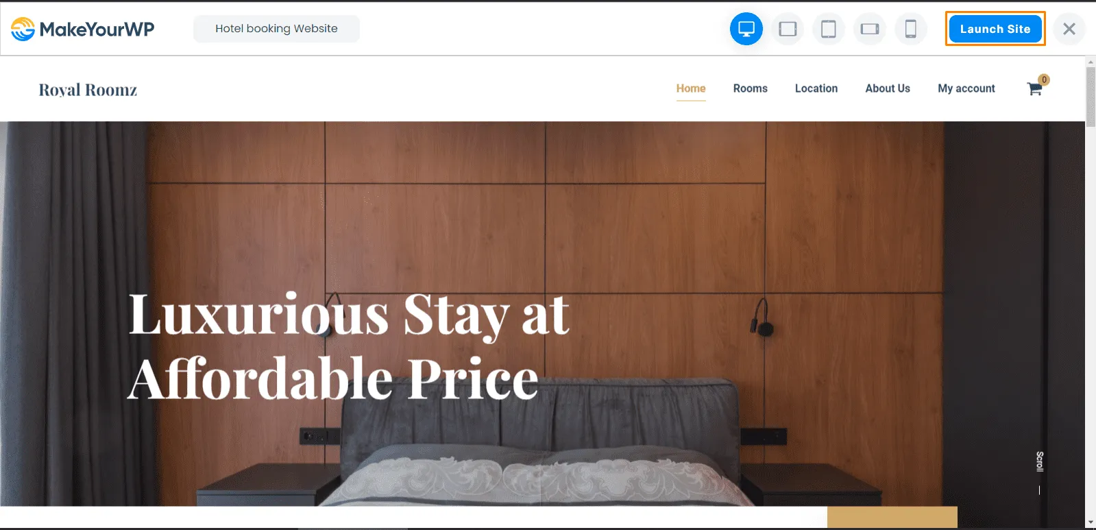 Now, if you’re ready to make your hotel booking website, you can click this link, and it will take you to MakeYourWP page, where you can launch your website and start building your hotel booking website.