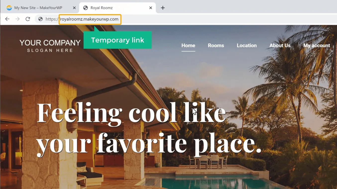 C: Enter a temporary website address that you want in the URL section. For example, if you give “RoyalRoomZ” as the hotel name, the website address will be ‘royalroomz.makeyourwp.com’.