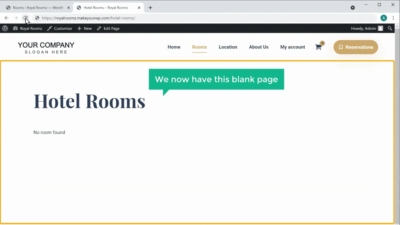 So now if you go to your site, and click ‘Refresh’. You can see that you now have this blank page, which means you can add rooms.