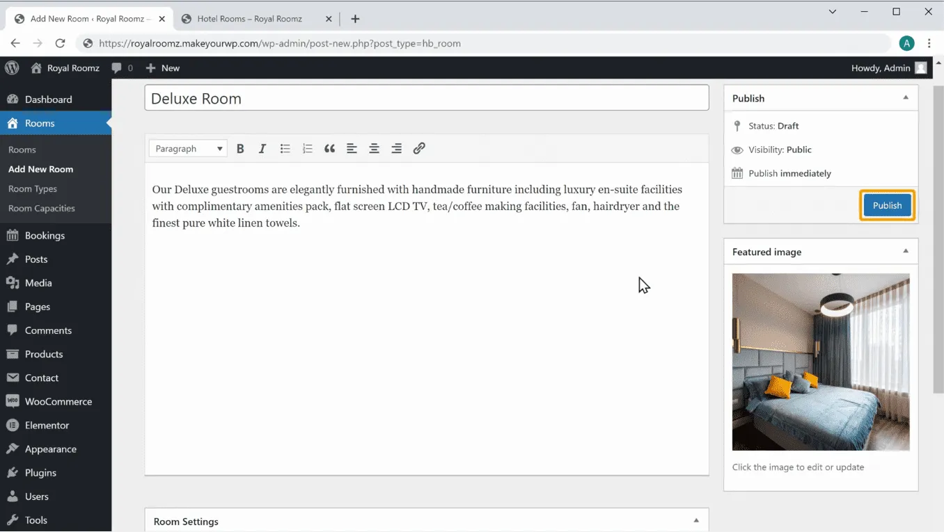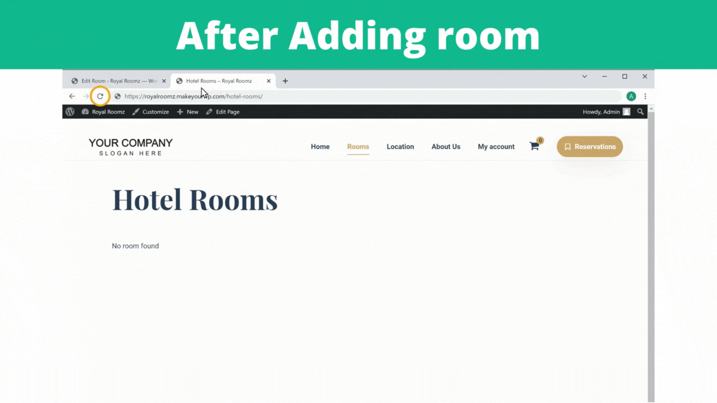 Now if you go to your site and click ‘refresh’. You can see the room which you just added.