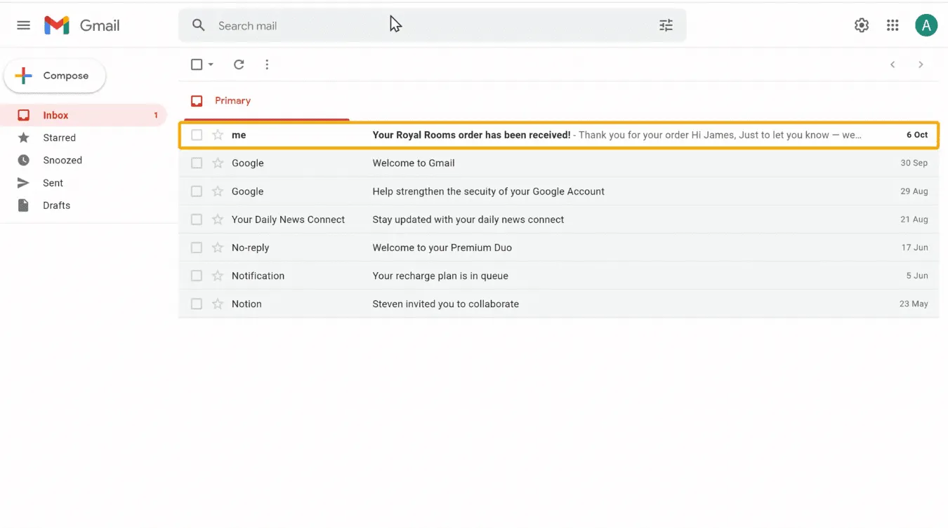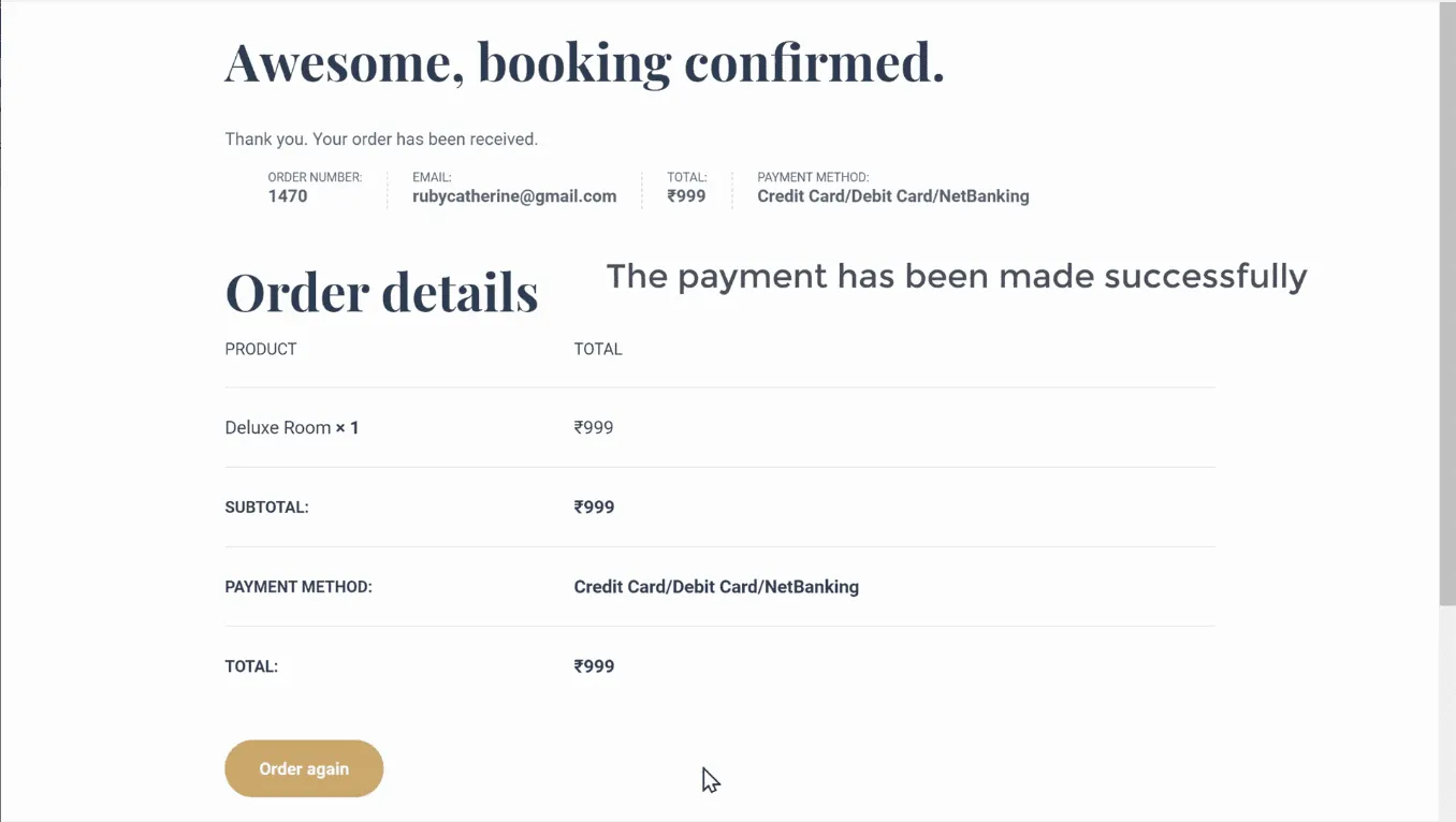 Your customer too, can view their order after booking a room from your site. If they go to their inbox, they can see that they have received an email with the order details.