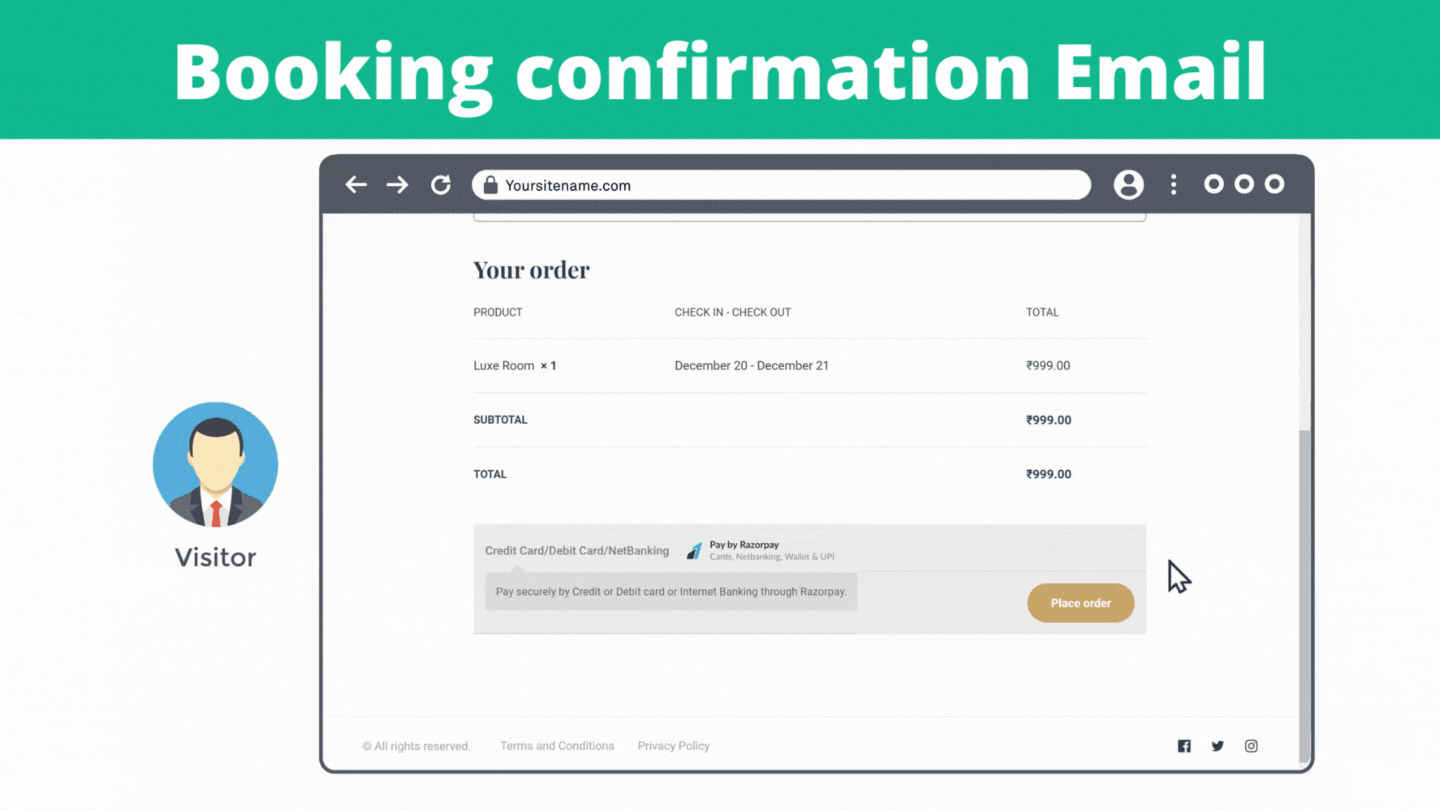 If they want to book this room, they can click reservation and select the number of rooms they want. They can fill in their details and click ‘place order’ to book the room which they can pay once they arrive at your hotel.