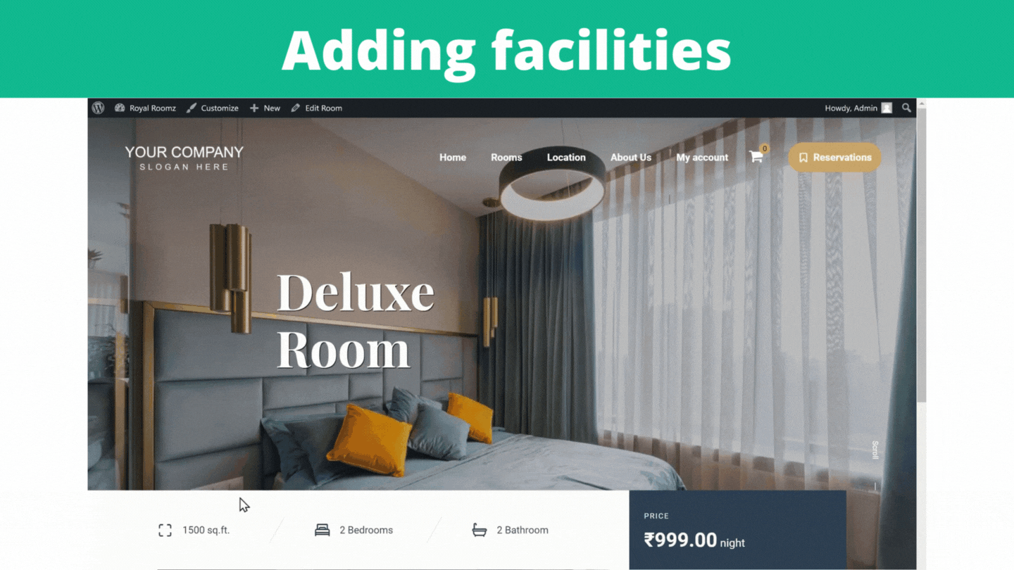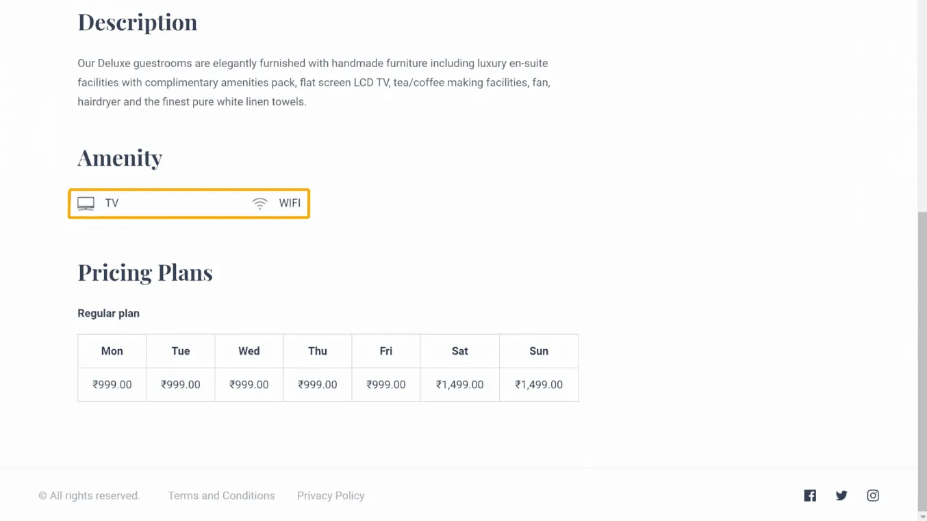 Let’s go to your site, and go to ‘rooms. Now click on the room and scroll down. You can see that the facilities have been added and your customers need not pay for any of these facilities.