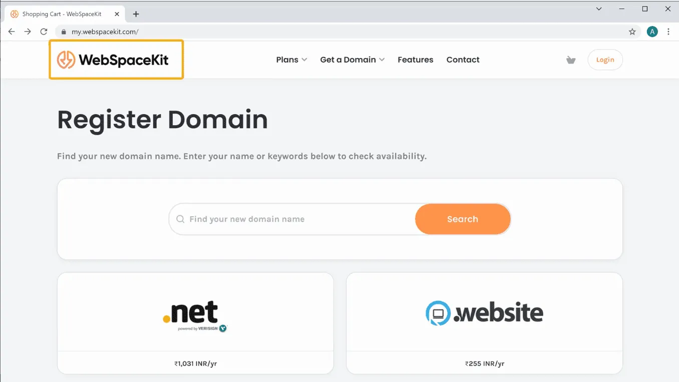 To get your domain name, just click on this link, and it will take you to webspacekit.com.