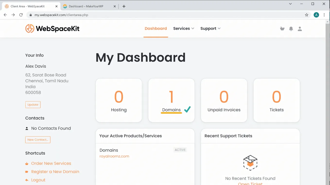 You need to choose a good hosting provider that offers excellent performance, automated backups, top-notch security, and more. You already have hosting on MakeYourWP for your site, and you will see how you can get a unique domain for your hotel booking website.