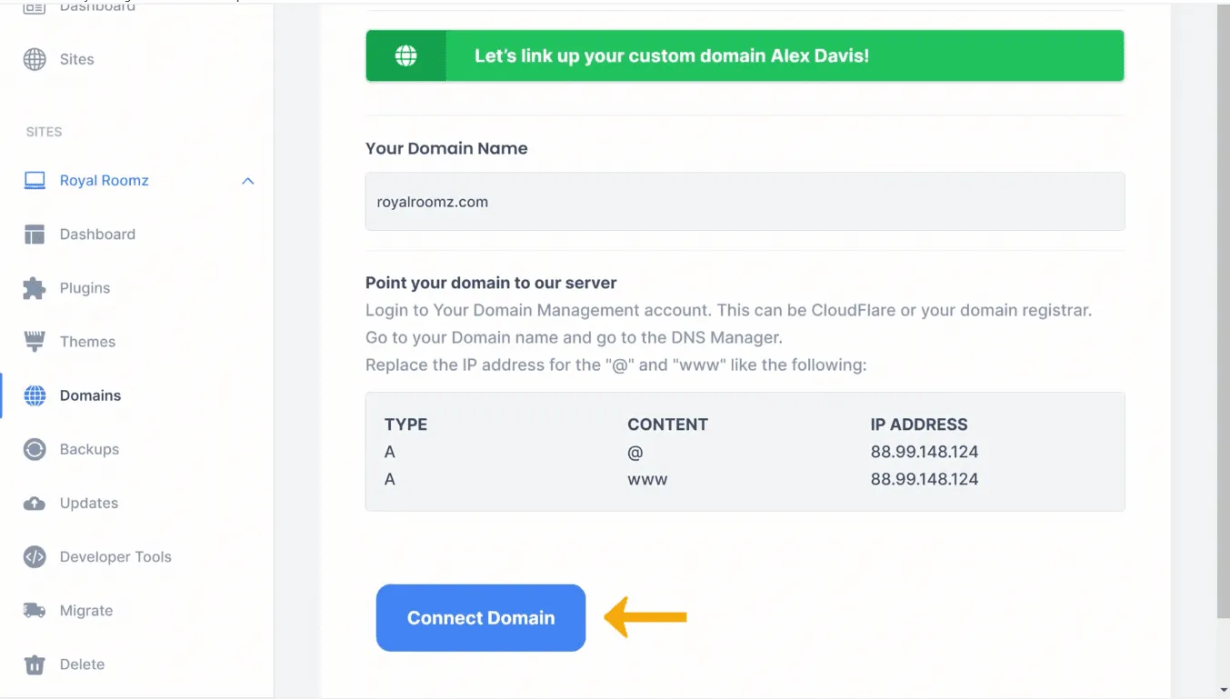 Now go back to ‘MakeYourWP’ and click connect domain.