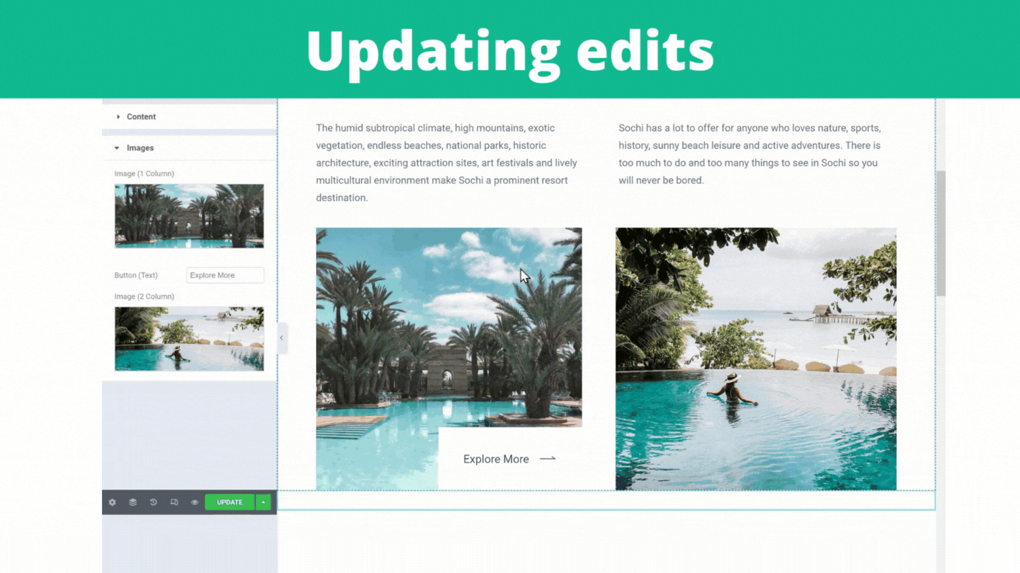 Once you are done with all the changes, to save your changes, click ‘update’. If you go to your site and click ‘refresh’. You can see that all the changes have been applied.
