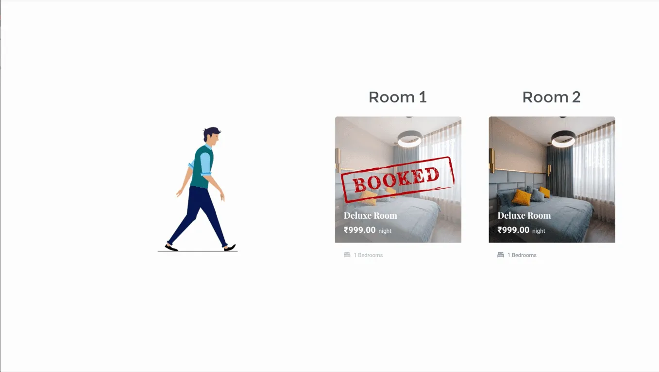 Let’s say you have two rooms, and a customer has directly visited your hotel and booked a room. So now, if you go to your site and try booking a room, you can see that you still have two rooms available.